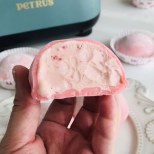 用雪媚娘的模具,将薄片放置在模具中,挖一勺冰淇淋
