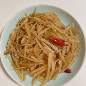 土豆切丝洗净,小编刀工不精细,切的土豆丝有大有小