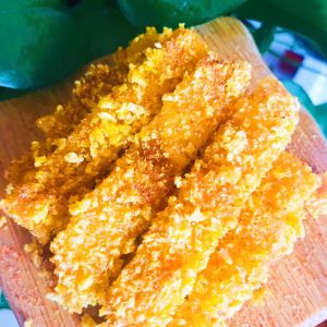 腌制好的鸡肉放入面包糠中、两面都放上面包糠。面包糠买黄色的,颜色好看有食欲、白色的不建议用