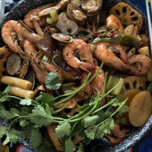 鲜虾要去虾线剪虾枪放点料酒抓一下腌制一会,花蛤可以用淡盐水泡着吐吐沙。