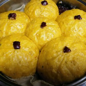 南瓜烀好成泥,放凉,要是少可以少加点水,40度以下的温度时放入发酵粉5克,放入白面300克,放入一碗燕麦,搅拌成絮状,和面,盖盖子,发酵至两倍大