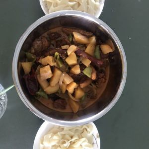 20分钟后放入土豆和皮芽子,再炖10分钟,炖面一点