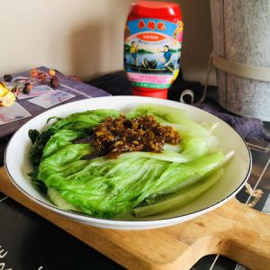放入洗好的生菜焯水,生菜稍微烫一下即可,约30秒左右,时间不可过久容易发黄而且影响口感。