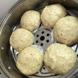 发大后,隔水蒸12分钟,关火,不要揭开锅盖,焖3分钟后方可打开锅盖。
