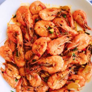 炒锅里放油,油热放虾,等到虾两面煎红,七成熟左右放入料汁,再加入少量番茄酱以及姜蒜辣椒翻炒