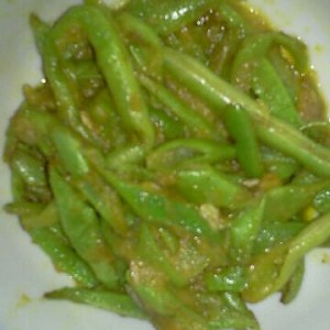 青椒切丝,油烧热放肉丝炒白,放青椒炒,调味即可.