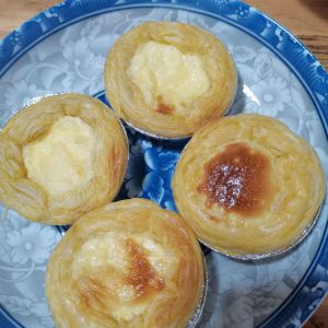 倒进蛋挞皮里八分满,别倒满,会溢出来