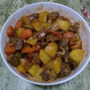 葱段,大料,姜片,干辣椒爆香下牛肉块翻炒,炒均匀加番茄酱,冰糖,生抽翻炒