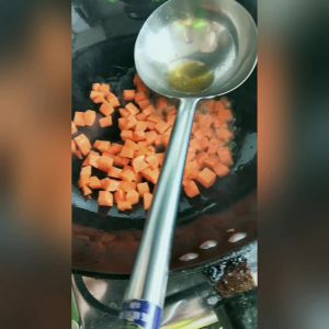 加入米饭翻炒,两碗米饭混合酱油30克左右,按照比例把酱油和老抽混合好。