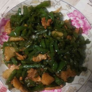 放青椒,中火翻炒5分钟,期间如果干了可以加一点水,然后继续炒