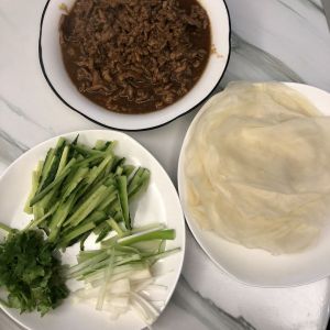 面片是用饺子皮做的,一片饺子皮抹一层油再放饺子皮,五层差不多然后擀成圆饼的形状放蒸锅蒸熟,蹭热马上撕开一片片放冷