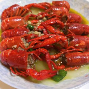 热锅冷油,小火爆香蒜蓉、青椒,可以加上自己喜欢的香料、盐,加入小龙虾一起大火翻炒。加入一听啤酒。