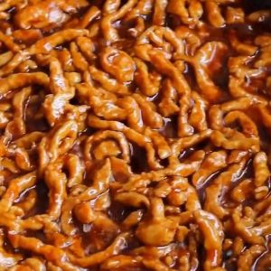 锅中放油,爆香五香粉,放入肉丝,炒至变色后,加入之前调好的酱汁,炒至汤汁浓稠就好啦~