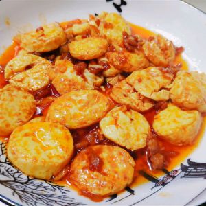 放入煎好的豆腐和事先调好的酱汁,闷煮两分钟即可
