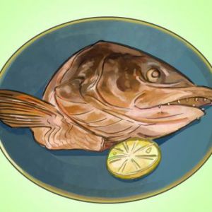 取出烤盘,将鱼头翻面,撒上黑胡椒,继续烘烤10分钟.