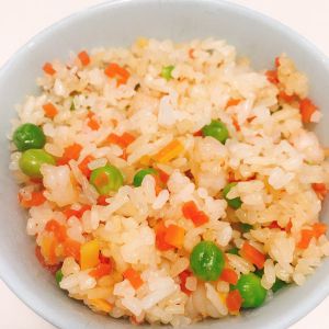 先淘米,蒸米饭,放的水要比平时做的饭稍微少一点,这样一会做出来的饭会干一点;将胡萝卜切丁;虾仁去虾线,清洗后切小丁,碗中放入虾仁、少量盐、料酒、白胡椒粉,抓匀净放五分钟入味;豌豆清洗后锅中烧水放盐,水沸后放入,浮起来后在等2-3分钟,觉得豌豆熟了就可以捞起,冷水冲泡后,装碗备用。
