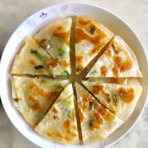 用剪刀剪成八份,即可享受美食比一般的发面葱油饼更加香脆哦!