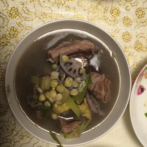 放入玉米,藕,香菇,葱,并调入少量醋和适量料酒,盐,大火煮开后转小火继续煮
