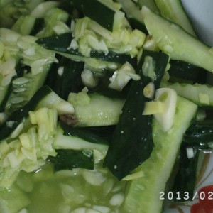 在青瓜上加入姜末、蒜末、盐、香油、醋等搅拌均匀即可