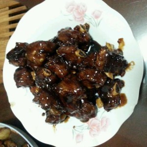 沥干水的排骨放进去炒,中火炒个20分钟,然后放醋,喜欢甜点可以加点糖,在放小半碗水,煮个5分钟然后打开锅盖,在炒炒到汁全部收成粘稠状就可以了