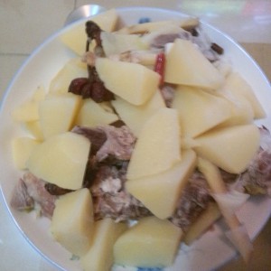 水煮开放入排骨,煮四十分钟,加入土豆,放入盐,醋,可以让排骨里的钙充分排到汤里,煮二十分钟左右就好。