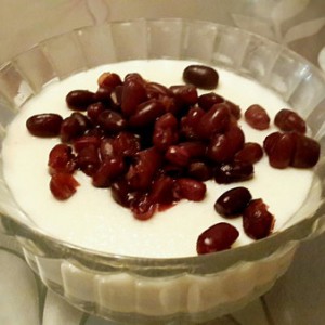 最后把煮好的红豆放少许在双皮奶上,就可以开动了!