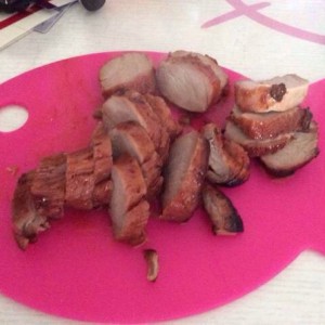 空气炸锅预热180度。放入里脊肉,先烤五分钟,后取出翻面再烤五分钟。若要甜一点面上可以刷些蜂蜜。