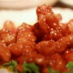 锅留底油,烹入糖醋汁,倒入肉片,翻勺,淋香油出勺即可
