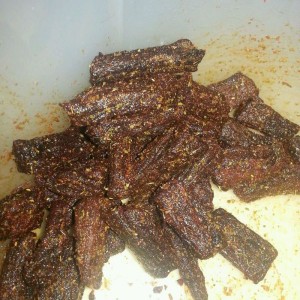 收汁后晾下牛肉,放入油锅煎炸一下,看见牛肉变金黄就可以捞出晾!