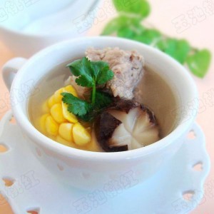 煮开水后放入玉米和香菇,大火开后转小火炖煮1个小时,出锅前放盐和少许白胡椒粉调味即可。