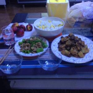 爆锅,土豆下锅,如果有骨头汤或者肉汤,下锅煮土豆