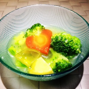 切好的红萝卜片抄水,一分钟足够时间太久会碎掉!