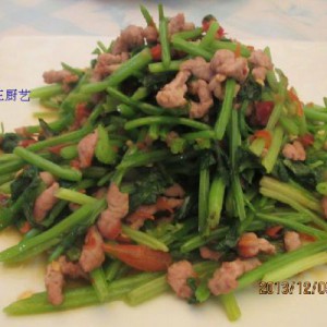 加入芹菜翻炒,再加入已炒好的肉丝。