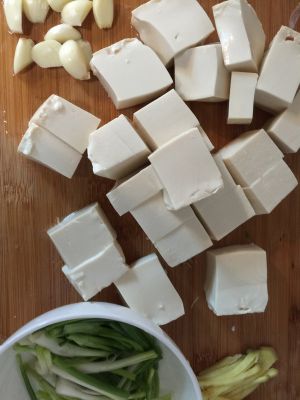 豆腐切块 葱切段 姜切丝 蒜切瓣