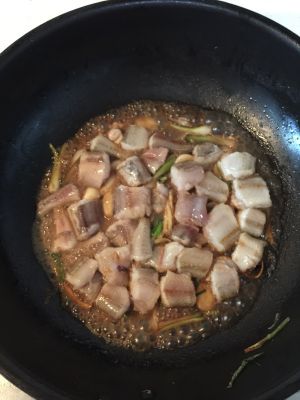 加生抽 后再加豆腐 再加老抽黄酒糖 煮3分钟 加生粉水 再煮会 出锅