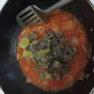 放入冲洗干净的牛肉块,高压锅上汽后半小时(或小火慢煲1个半小时)。牛肉清汤就做完了。