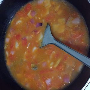 放胡萝卜,土豆,盐调味,半小时,出锅。