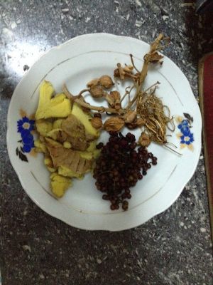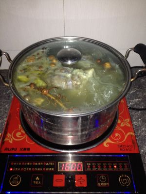 血沫打干净后加调料。姜和花椒是必须的。砂仁要少放,不然汤会变黑而且夺味。其它的可以加一些茴香、八角、草果、桂皮。我加了一点点炖鸡常用的对角连。但是牛肉清汤的调料尽量简单才能尝到最原始的味道。接下来是放盐,这是一个很纠结的问题,要想肉香留言多放盐,但汤也会很咸;要想汤淡留言少放盐,但肉又不香。我是多放盐,最后肉煮好捞出后再兑水熬汤。