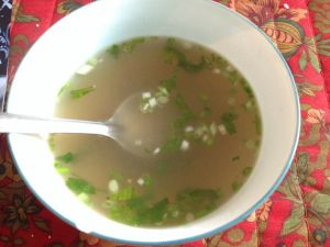 最后,盛一碗清汤,撒上香菜葱花,好好享用吧!
