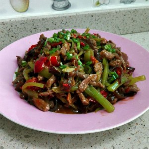 油六成热下肉丝,划散,炒至发白后下姜蒜末,翻炒几下,再下剁椒,最后下木耳和莴笋丝,快速翻炒几下,倒入糖醋汁,收汁起锅。