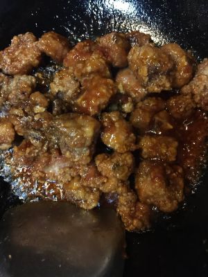 排骨切好,加点料酒地瓜粉腌10分钟左右,就可以下锅炸了,注意火不要太旺