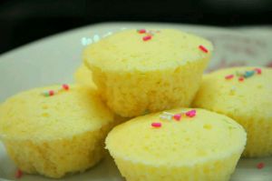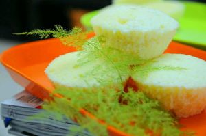 模具事先放入蒸笼里,倒入蛋糊八分满,全部倒入后,提起蒸笼轻振出大泡,蒸锅水开后,大火蒸十五分钟左右,就可以关火后,焖两分钟开盖即可,放凉脱模。