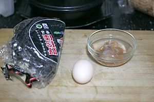材料:干紫菜,鸡蛋一个,泡发好的干虾