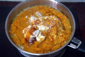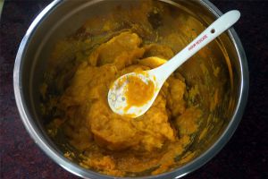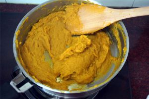 然后倒入南瓜泥,放入奶粉,盐,麦芽糖。