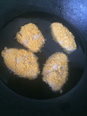 裹面包糠之前裹一层鸡蛋液……这样面包糠容易贴附