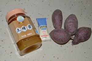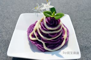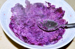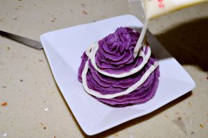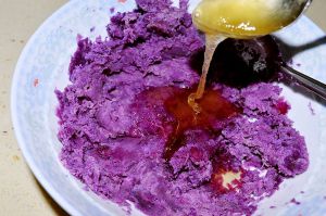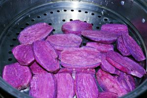 将紫薯去皮,洗净,切块,放入蒸锅大火蒸15分钟;