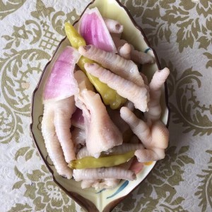 待鸡爪凉后找一个能密封容器,里面放入小米辣泡椒,及泡椒水。(喜欢吃辣的话可以将小米辣切成2瓣哦),再加些凉白开或者纯净水都可以,再倒入适量的白醋,搅拌均匀后加入鸡精和少许盐。这时放入花椒、八角、切好的柠檬片。最后我们放入鸡爪和切好的各种配菜,建议一层鸡爪,一层配菜。然后盖上盖子密封起来,做的少的可以放入冰箱冷藏一天等待入味,随取随吃哦……