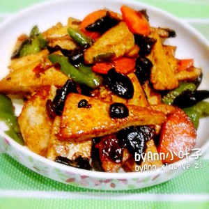 倒入青椒,木耳,胡萝卜大火爆炒至断生