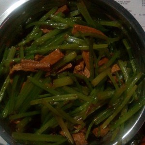 芹菜炒香干出锅咯,灯光太暗,拍的不好,大家别介意哦,嘿嘿