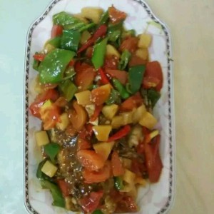 把三样材料大火锅下锅炒,西红柿炒出汁了在加点水,放醋,糖,蚝油,汁有点稠就可以淋在鱼上面了(这个步骤要尝一下汁的味道,酸咸甜可以依各小主口味自由发挥)